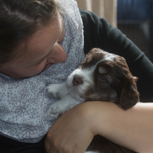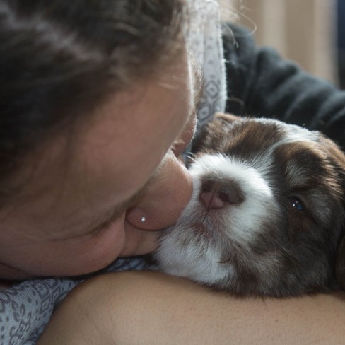Im Alter von knapp 4 Wochen haben wir die 4 zauberhaften Welpen von Calimero und Ronja besucht. Sie sind neugierig und verlassen inzwischen ihre Wurfkiste um die Welt zu erkunden. Wacker halten sie sich auf ihren kleinen Beinchen. Es war ein wunderschöner Nachmittag mit euch und den süßen Welpenduft habe ich jetzt noch in der Nase....